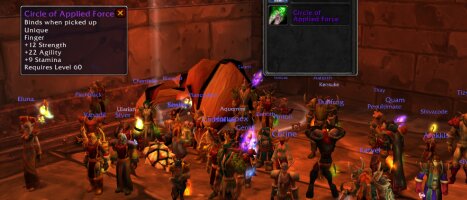 We've been having some amazing dedication, motivation and fun! The train's been steamrolling Nef and his cronies for over 9 months now, and in a single run we finally got lucky and scored guild first drops on both Ashjre'thul, Crossbow of Smiting and the Bloodfang Chestpiece (Looks like the Anti-SF loot code has some bugs). We followed that up by making some insane progress on C'Thun, knocking 50% off our previous runs in just one or two attempts. Finally, the conductor rolled us around to Azshara for another Azuregos kill, and then doubled back to Hinterlands, where we got our first real learning attempts at Taerar, and dropped him easily with 29 on our fourth attempt ever. Great job guys!