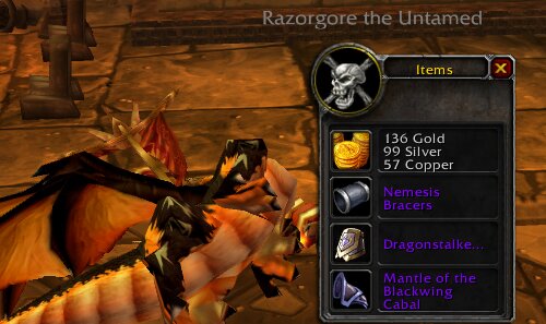 Hakkar dropped Peacekeeper Gauntlets, Razorgore dropped